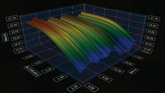 提供三维视图功能,更好地展示被测件在激励状态下的工作性能,另外还可以展示频率切面和功率切面,可以直观展现被测件在每个频率点和每个功率点的特性。