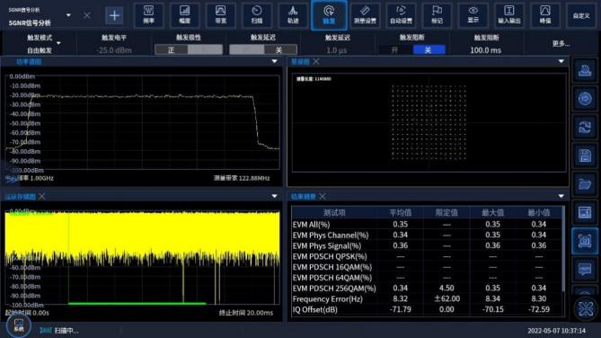 Ceyear 4082系列信号/频谱分析仪5G NR测量功能可对3GPP Rel 15和Rel 16版本的5G NR上行和下行信号进行带内解调分析,支持FDD、TDD两种双工模式,支持QPSK到256QAM调制格式,支持Test Model和自定义参数设置,支持提供不同信道和信号的误差矢量幅度(EVM)、频率误差和功率等测量结果,具备星座图、误差总结表、资源分配等多种显示图谱;在带外测量方面,4082能提供广泛的标准和限值线一键设置能力,高效率执行邻信道泄漏比(ACLR)、频谱发射模板(SEM)等测量。搭配Ceyear专用的协议分析软件,可对LTE、LTE-Advanced、NB-IoT、WCDMA、GSM、EDGE通信信号进行带内调制分析,提供EVM、星座图、频率误差等多种测量结果。