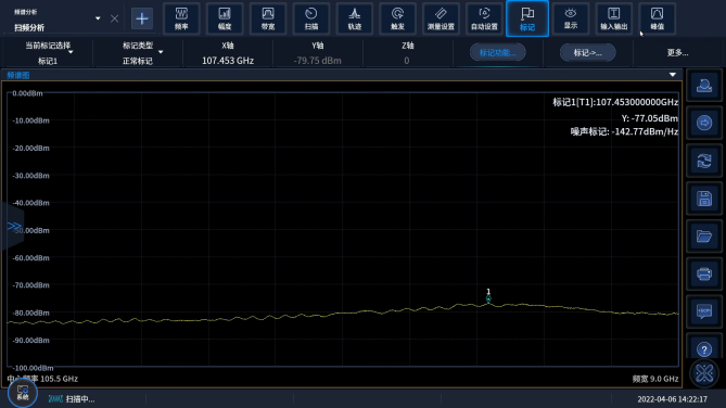 Ceyear 4082系列信号/频谱分析仪在显示平均噪声电平、相位噪声、互调抑制、动态范围、幅度精度和测试速度等方面具备极佳的射频性能。4082频率测量范围覆盖2Hz~110GHz,110GHz全频段配置预选器,可对镜像和干扰有效抑制。4082具有极低的显示平均噪声电平,1GHz处显示平均噪声电平为-154dBm/Hz,配置前置放大器后可达-167dBm/Hz,打开噪声抵消功能可达-172 dBm/Hz。110GHz处显示平均噪声电平可达-140dBm/Hz。4082还具有极佳的相位噪声性能,在1GHz载波,1kHz频偏,相位噪声优于-125dBc/Hz@1kHz,-134dBc/Hz@10kHz,可满足用户在雷达、通信信号测量中的极限要求。
