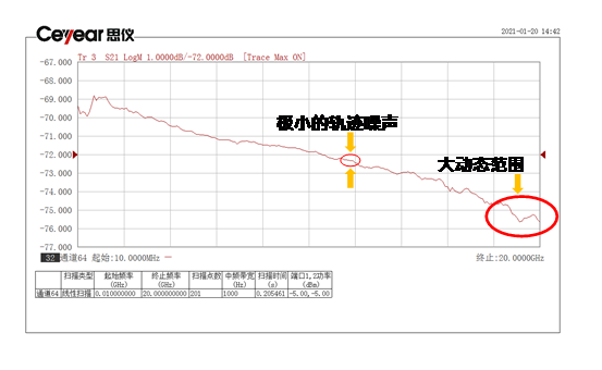 采用高精度和响应平坦的内部核心器件,结合设定不同的中频带宽值,可获得更大的动态测量范围和更小的轨迹噪声,可以获取测量结果的更多细节。